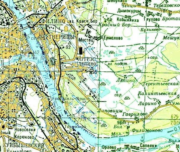 масштаба 1:50 000, изданной в 1989 году. Строительство плотины Угличской ГЭС на реке Волге началось в 1938 году, основные работы были закончены в 1943 году (достройка продолжалась до 1955 года).