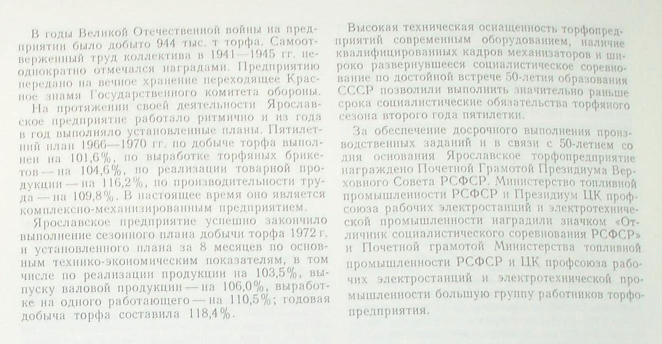 «Ярославскому торфопредприятию 50 лет» (материал из журнала «Торфяная Промышленность», 1972 год)