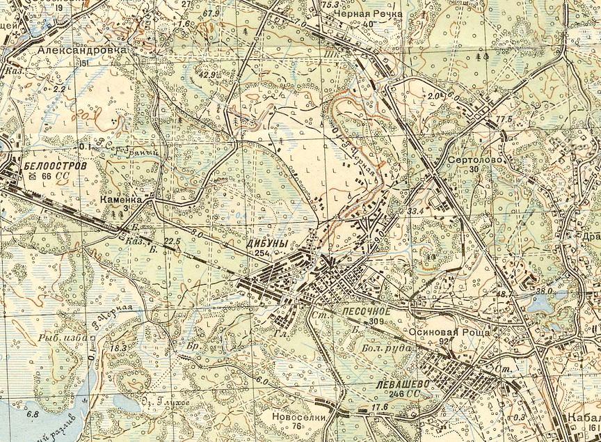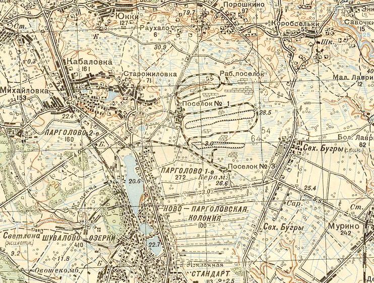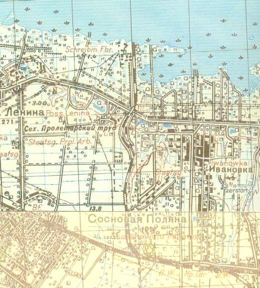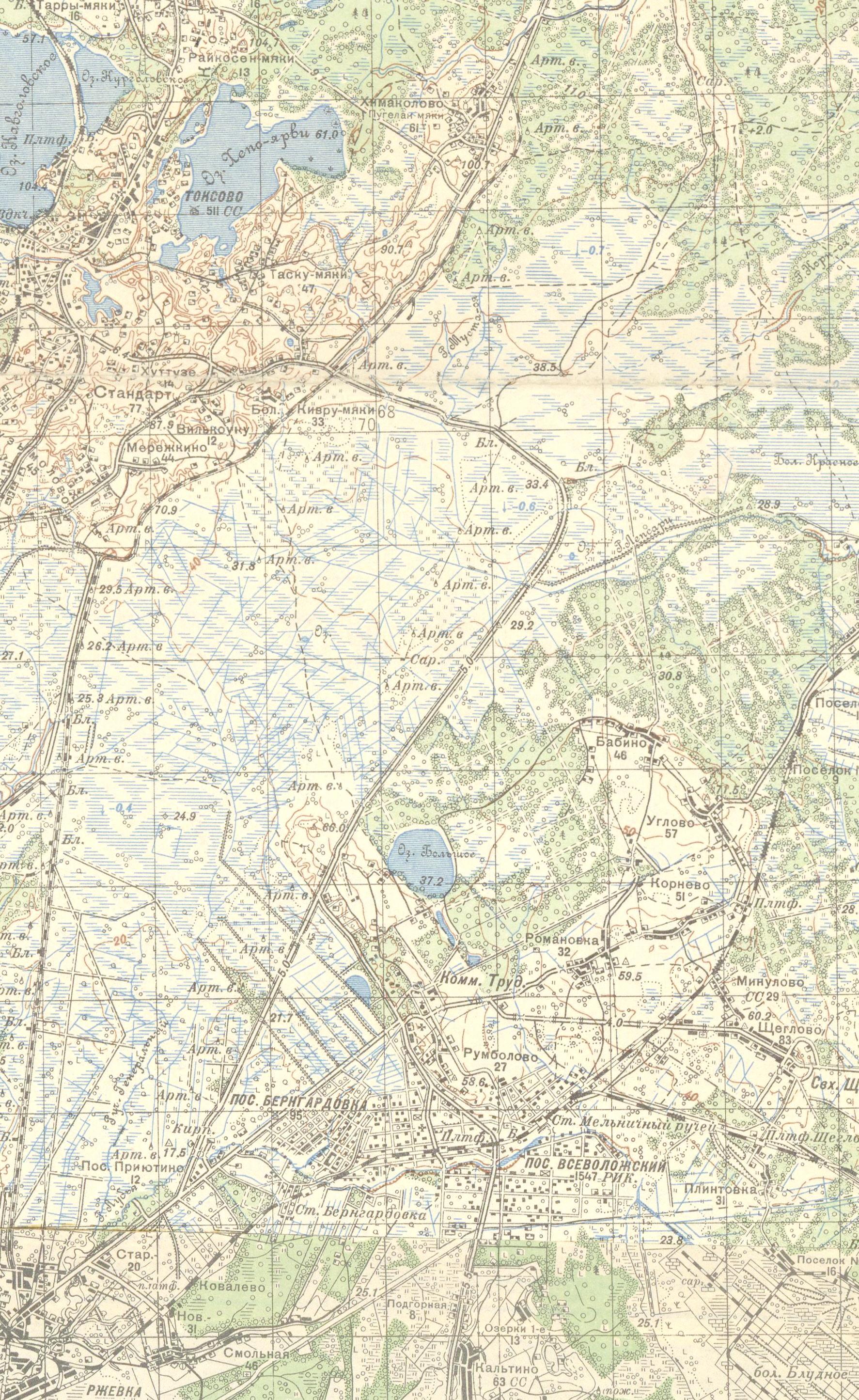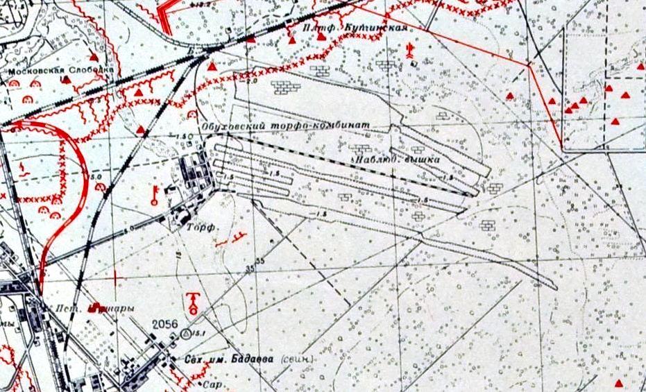 Узкоколейная железная дорога на топографической карте масштаба 1:100 000, изданной в 1941 году. Узкоколейная железная дорога на топографической карте масштаба 1:100 000, изданной в 1941 году (увеличенный фрагмент)