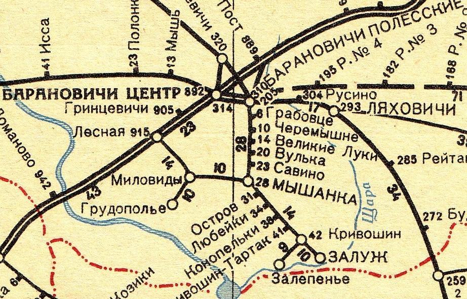 Узкоколейная железная дорога Барановичи — Залуж. Начальный пункт — город Барановичи.