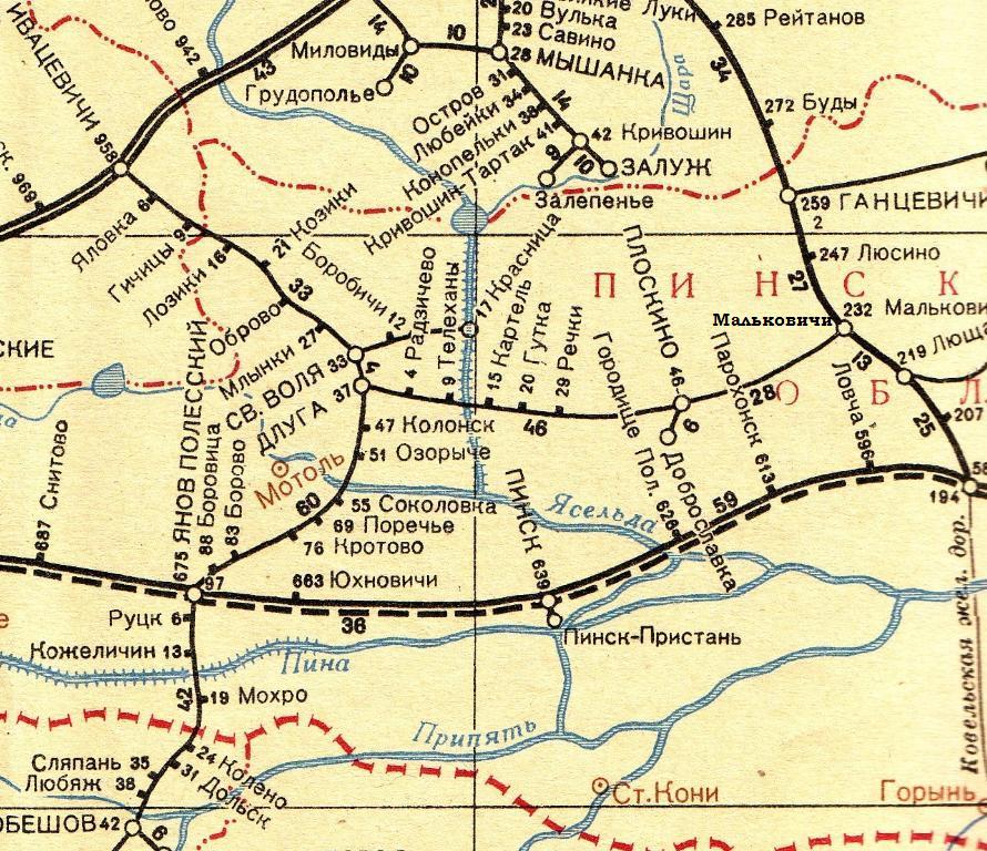 Узкоколейная железная дорога в Мальковичах. Начальный пункт — станция Мальковичи на железнодорожной линии Барановичи — Лунинец.