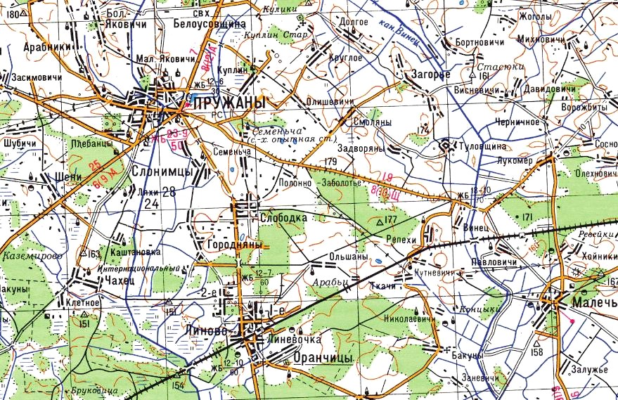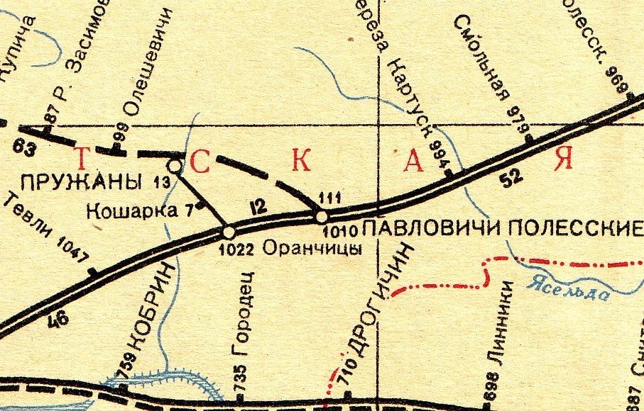 Узкоколейная железная дорога Оранчицы — Пружаны. Начальный пункт — станция Оранчицы на магистральной железнодорожной линии Барановичи — Жабинка.