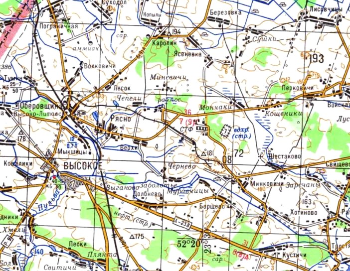 на топографической карте масштаба 1:200 000, изданной в 1986 году. В некоторых топографических картах показана узкоколейная железная дорога станция Высоколитовск — карьер, длиной 12 километров.