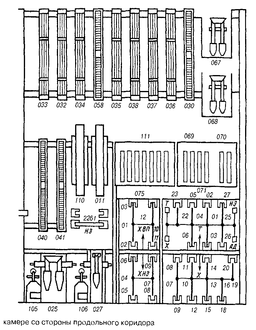 Рис. 7. Расположение аппаратов в высоковольтной камере со стороны, противоположной