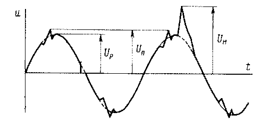 рекомендуемое рабочее напряжение (см. рис. 118) Up — амплитудное значение напряжения синусоидальной формы, прикладываемого к прибору в обратном направлении, при отсутствии повторяющихся и неповторяющихся напряжений;