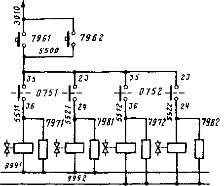Рис. 36. Цепи питания вентилей цилиндров догружающих устройств на электровозах с № 76