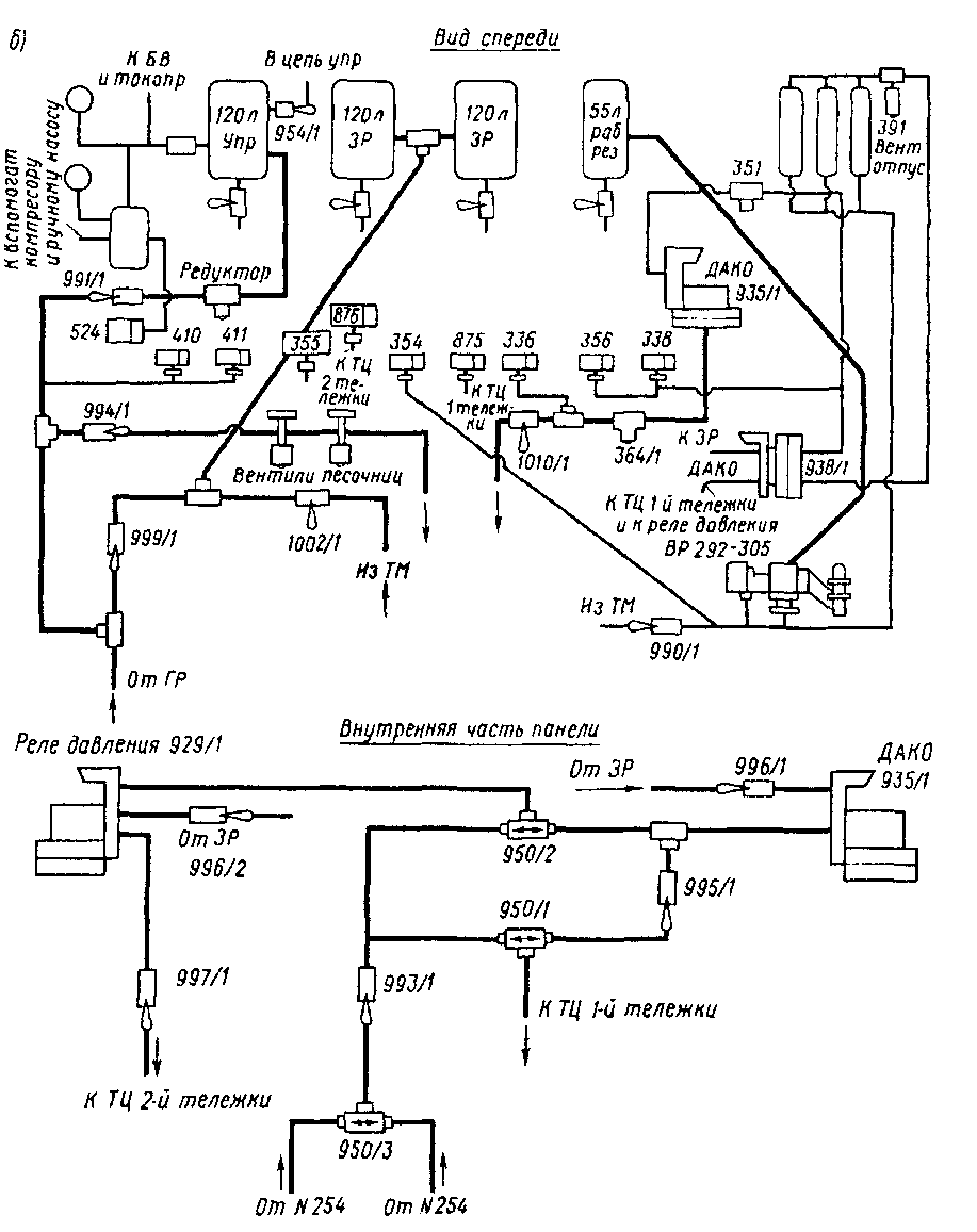 Рис. 46. Схема пневматической панели электровозов: а - до № 220; б — с № 220