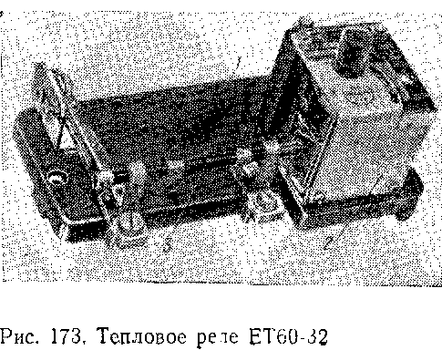 Для защиты обмоток электродвигателей компрессоров и вентиляторов, а также последовательно включенных им аппаратов от недопустимого перегрева, который может возникнуть при длительном превышении номинального тока в цепи этих машин включены тепловые реле (термореле) ЕТ60-32 (рис. 173).