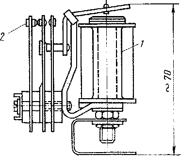 и отключается при напряжении 15—20 В. Катушка имеет сопротивление 1500 Ом±5%, максимальный зазор между контактами 1,2 мм, вес реле 1,5 кг. В качестве промежуточного реле сигнализации 542 о боксовании использовано двухобмоточное реле РчЬШ43, блокировочные контакты которого рассчитаны на ток 2 А. Катушки имеют сопротивление по 1500—1600 Ом. Последовательно одной из катушек, включен регулируемый резистор ТР626 на 560 Ом. Обычно его устанавливают на сопротивление 200 Ом. Параллельно двум последовательно включенным катушкам присоединен конденсатор ТС561 01-100/110-150 для получения прерывного включения контактов. Частота включения реле составляет 80—140 в минуту. Для исключения воздействия реле боксования на систему сигнализации и защиты при отключенных тяговых двигателях 3 или 4 на электровозах 34Е установлено аварийное реле 548, контакты которого исключают действие реле боксования 142. Аварийное реле. РчР-100 (рис. 205) состоит из электромагнита 1 и трех переключающих блок-контактов 2.