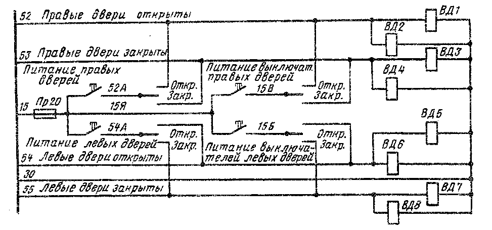 Рис. 193. Схема цепей управления дверями