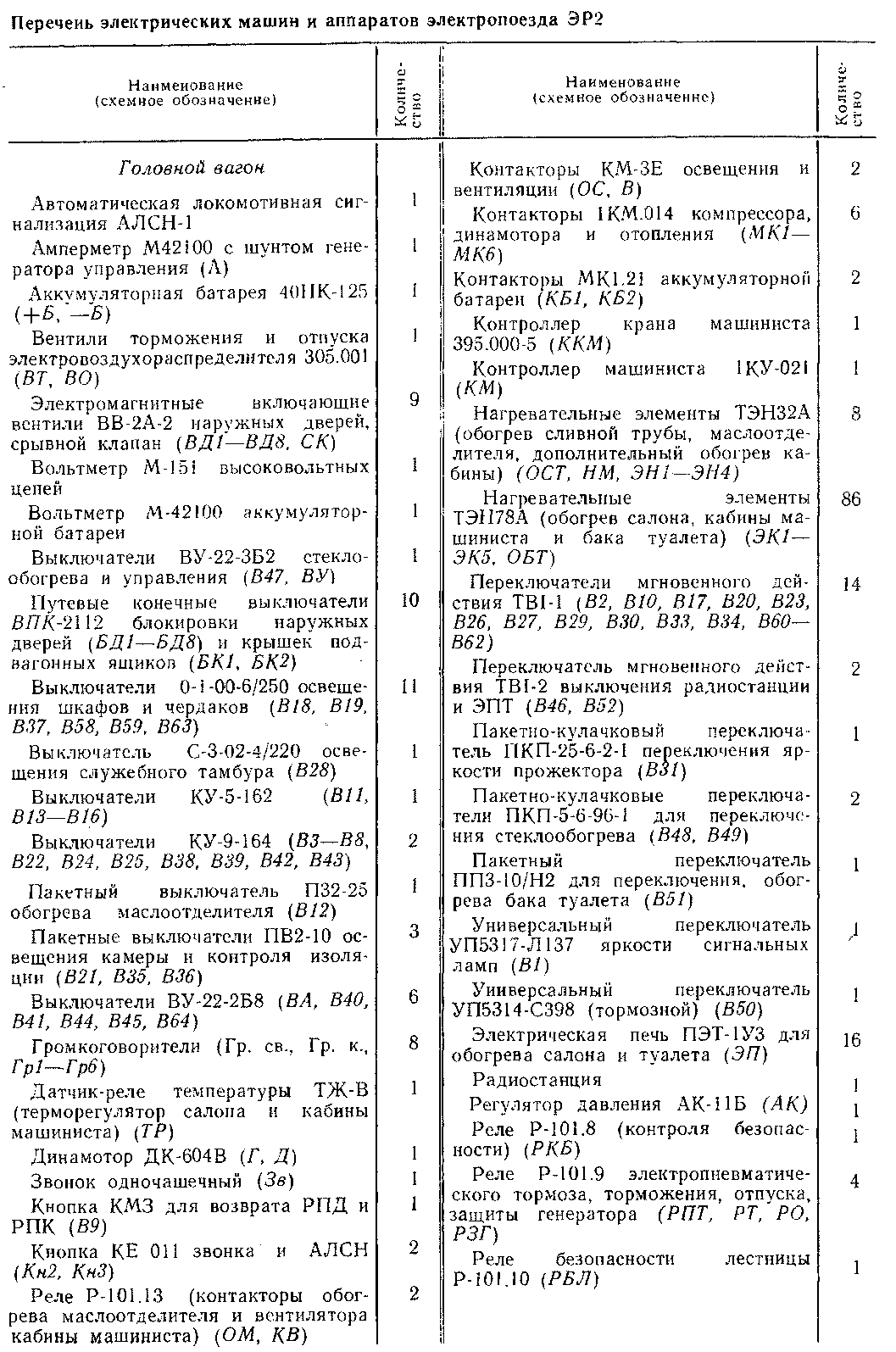 Перечень поездных и секционных проводов электропоезда ЭР2