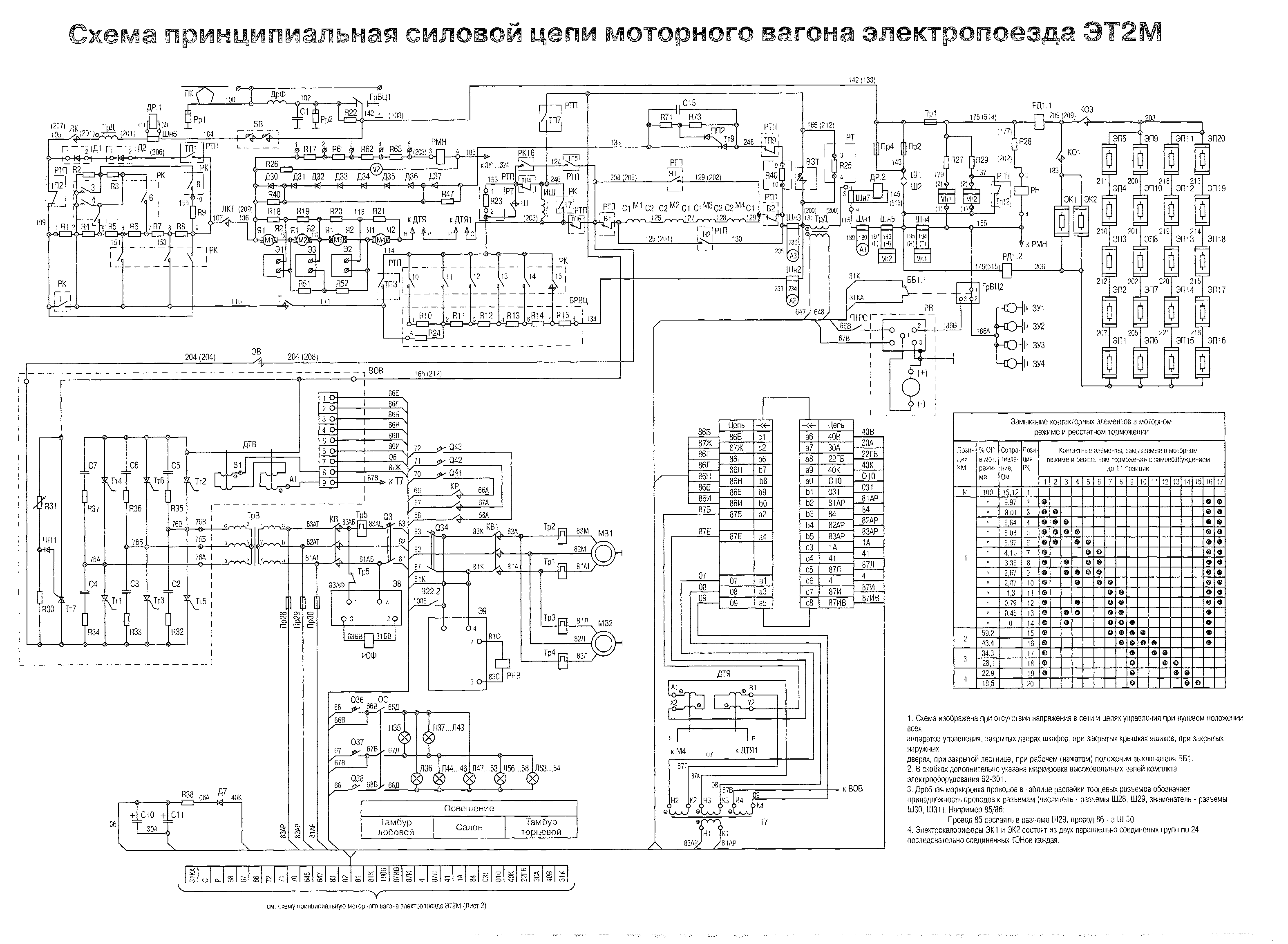 Охема принципиальная моторного вагона электропоезда ЭР2Т (Лист 2)