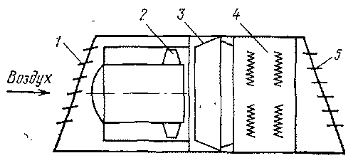 Рис. 61. Схематический разрез блока пуско-тормозных резисторов с вентилятором