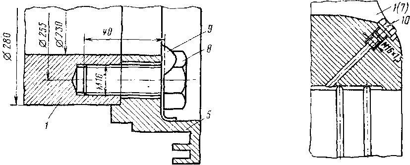 отверстия, а также отверстия под болты МЛ 6, крепящие стопорную планку гайки буксового подшипника.