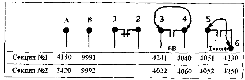 При отсутствии цепи А.Б. в неисправной секции необходимо проверить включение ВЗВ 566 данной секции и исправность предохранителей А.Б:
