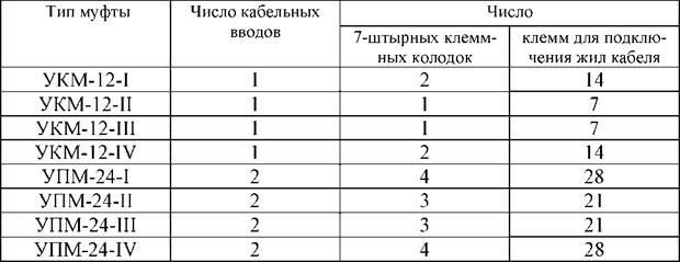 Муфты и ТЯ различаются по количеству кабельных вводов (направлений) и клемм для разделки кабеля. При проектировании необходимо учитывать их количество. Основные данные муфт и ТЯ приведены в табл.