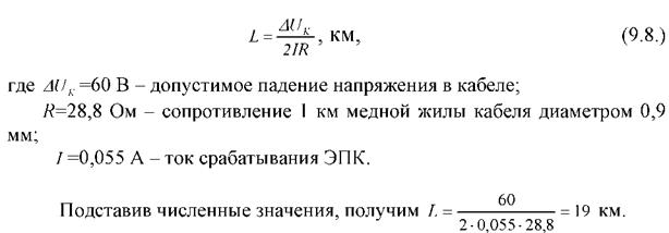 Длины кабеля между трансформатором ПОБС-5А и приводом стрелки, в которых падение напряжения остается в пределах допустимого без дублирования жил приведены в табл. 9.8.