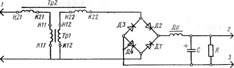 насыщающийся трансформатор; ТР2—компенсирующий трансформатор: Др— дроссель: С-конденсатор К-50-3-160-1Ш): Я - решетор МЛТ-2-8.2 кОм. Д1—Х-1 - диоды Д231Б