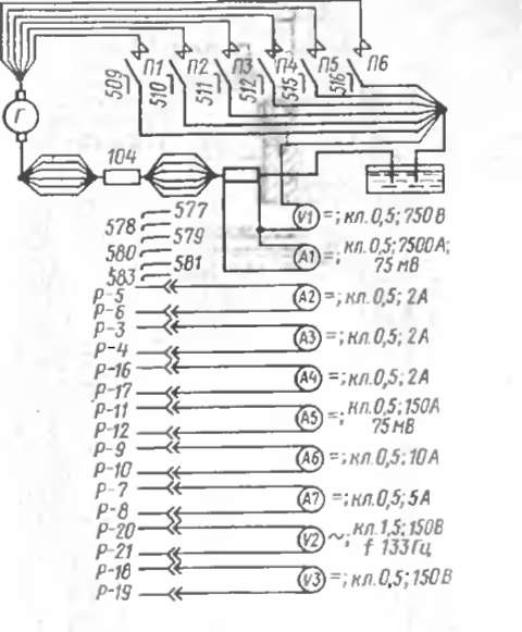 Рис. 88. Схема подключения реостата и измерительных приборов к тепловозу