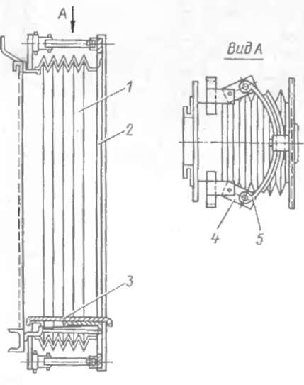 Рис. 121. Переходная площадка: V—чехол: 2—каркас: 3—фартук: 4—серьга; * 5 рессора