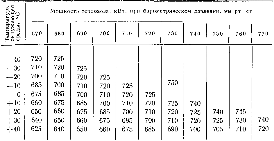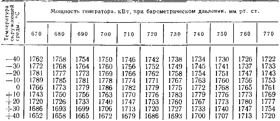 Примечание. В таблице приведены средние значения мощности, которые иеобхо димо корректировать с учетом фактической частоты вращения вала дизеля по формуле уЭв = Ртабл+4 Сф,-560)±15 кВт, где Пф —фактическая частота вращения вала дизель-генератора по тахометру, У^табл — значение мощности из таблицы.