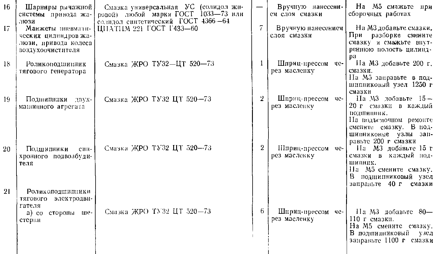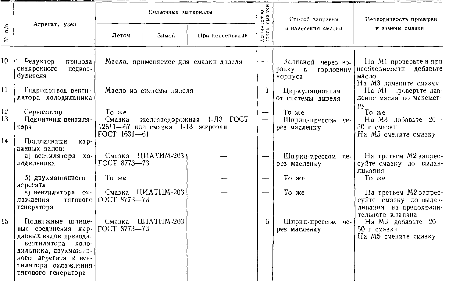 КАРТА СМАЗКИ УЗЛОВ ТЕПЛОВОЗА