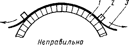 Рис. 4. Притирка щеток к поверхности коллектора: / — пластины коллектора; 2 —щетка; 3 — шлифовальная шкурка