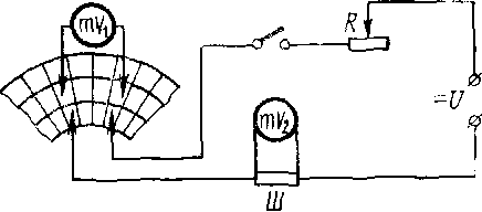 3.1.1. Подключите гальванометр или милливольтметр к двум разнополяр-ньш щеткам.
