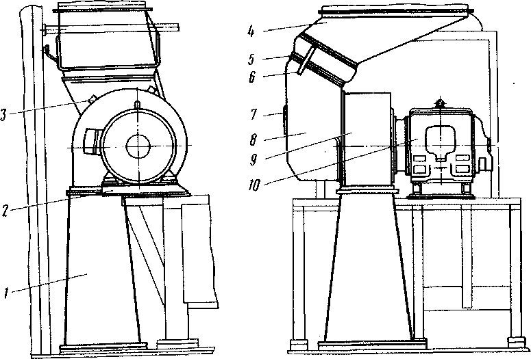 Для усиления крепления вентилятора всасывающий канал присоединен болтами к двум скобам 3, приваренным к верхней части корпуса вентилятора, а также к поддержке 6, которая другим концом прикреплена к бонкс, приваренной к стенке тамбура.