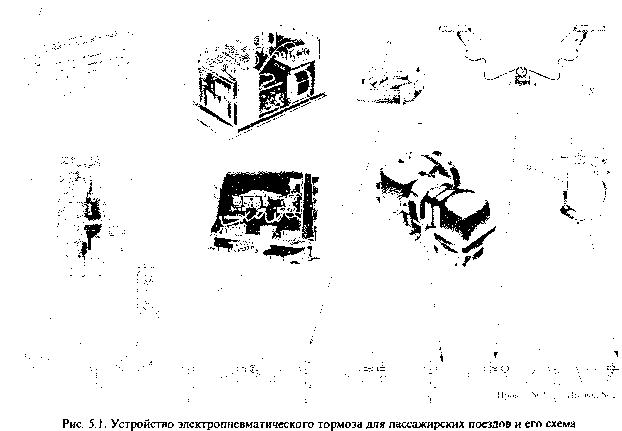 Рис. 5.3. Схемы электропневматического тормоза (перекрыша) пассажирских поездов и его основных блоков