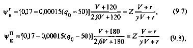Для некоторых часто эксплуатируемых типов подвижного состава с различными темпами тормозного нажатия, загрузкой вагонов и материалом тормозных колодок два последних коэффициента формулы (9.4) представлены на рис. 9.2, 9.3.