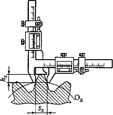 Рис. 4.22. Измерение толщины зуба колеса цилиндрической передачи:
