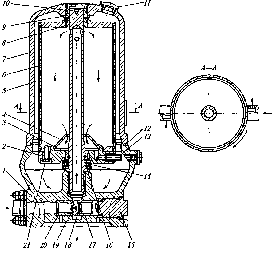 ния крупнее 3,0 мкм задерживаются. Очищенное масло поступает в нижнюю полость фильтра.