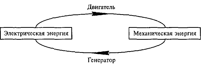 Электрическая машина представляет собой электромеханический преобразователь, т.е. может преобразовывать механическую энергию в электрическую, работая в режиме генератора или наоборот, превращать электрическую энергию в механическую при двигательном режиме работы (рис. 10.1).