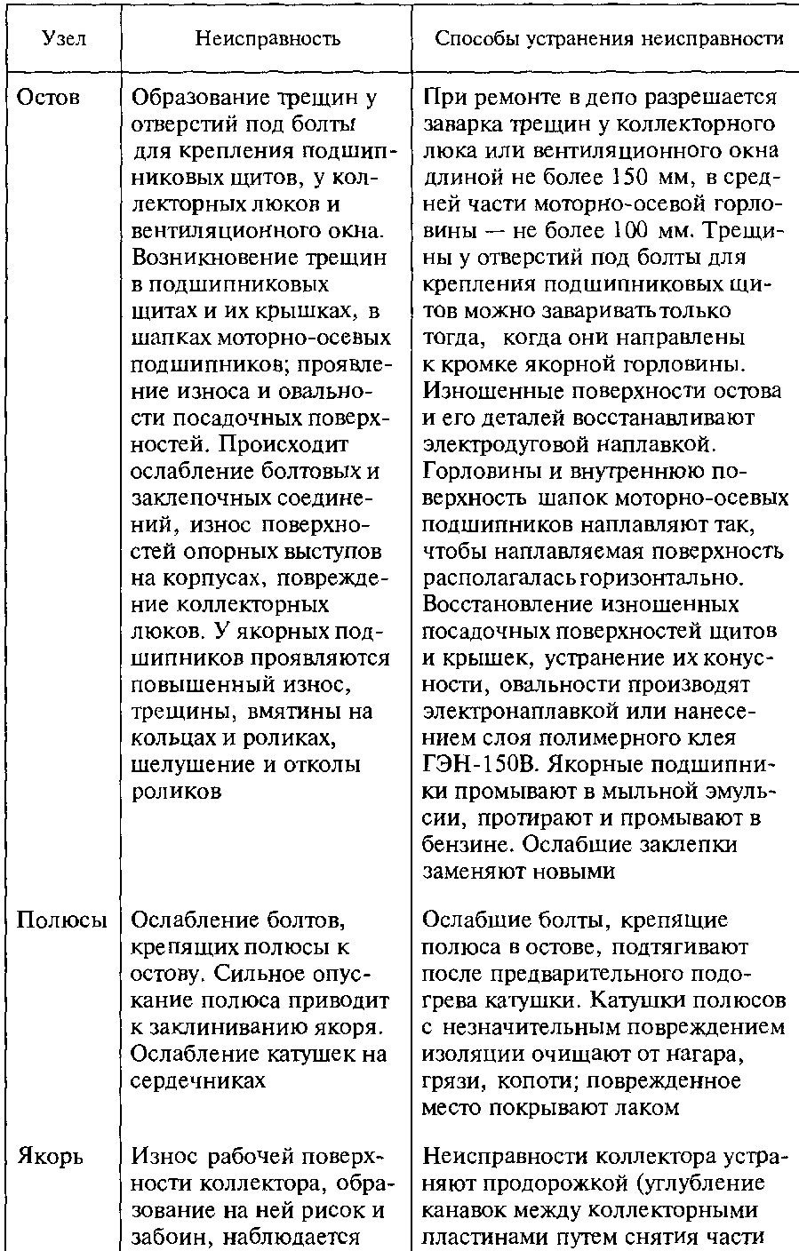 Неисправности происходят и по причине естественного износа отдельных узлов, таких, как обмотка якоря, коллектор и др. В табл. 10.5 приведены наиболее характерные неисправности электрических машин и способы их устранения.