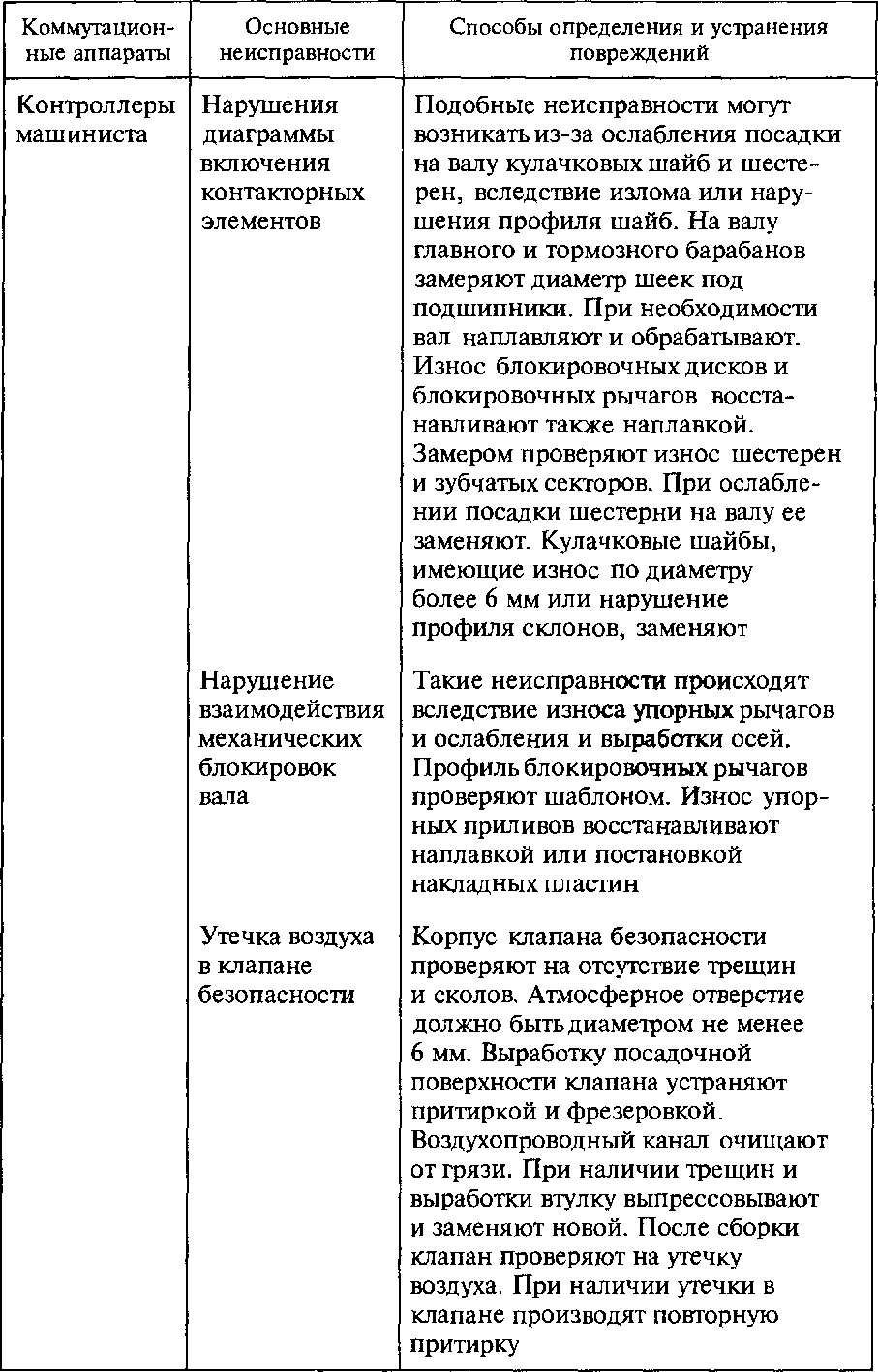 Наиболее характерные неисправности аппаратов управления, контроля и защиты, а также способы определения и устранения повреждений приведены в табл. 12.4.