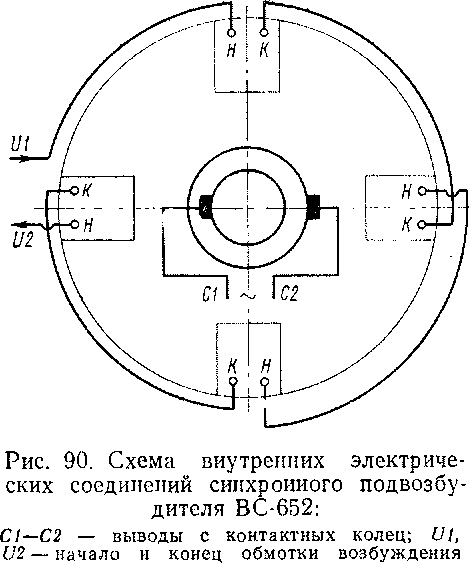 Схема соединений обмоток подвозбудителя ВС-652 показана на рис. 90.