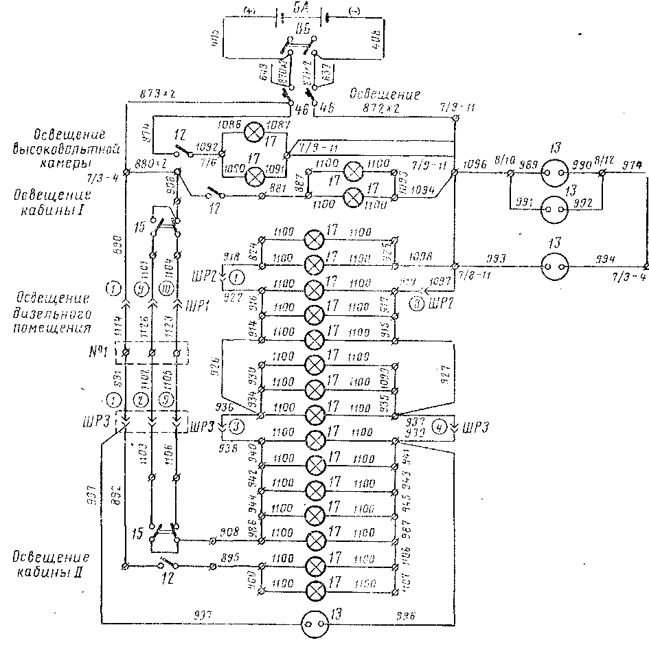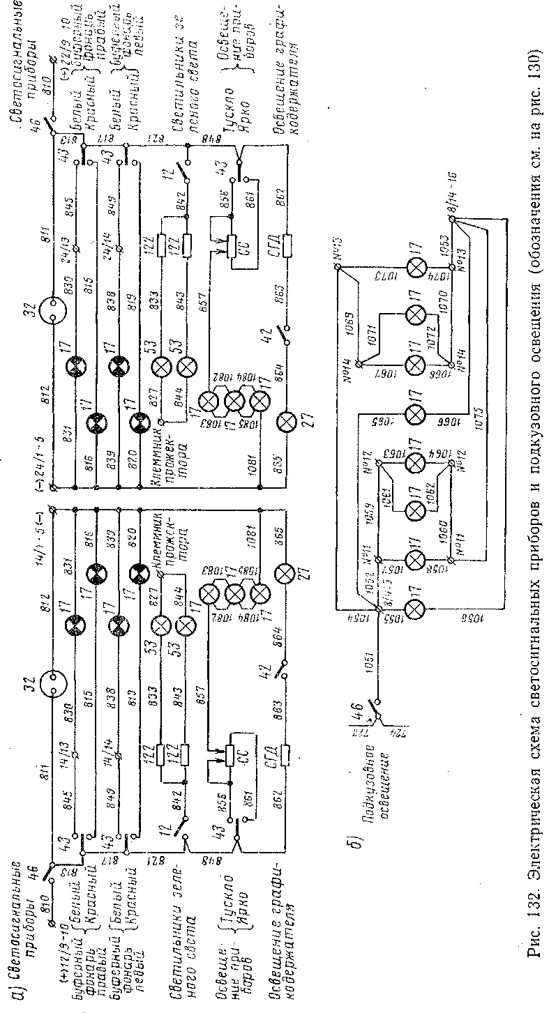 Рис. 131. Схема цепей освещения (обозначения см. на рис. 130)