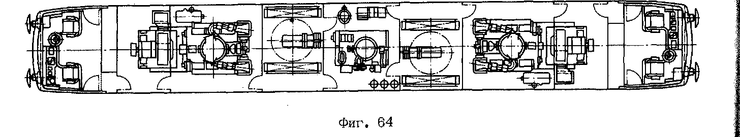 Тяговые электродвигатели - четырехпо- . люсные, с опорно-осевой подвеской и при- » нудительной вентиляцией. Длительный режим двигателя - 373 л.с, 493 в, 615 а і