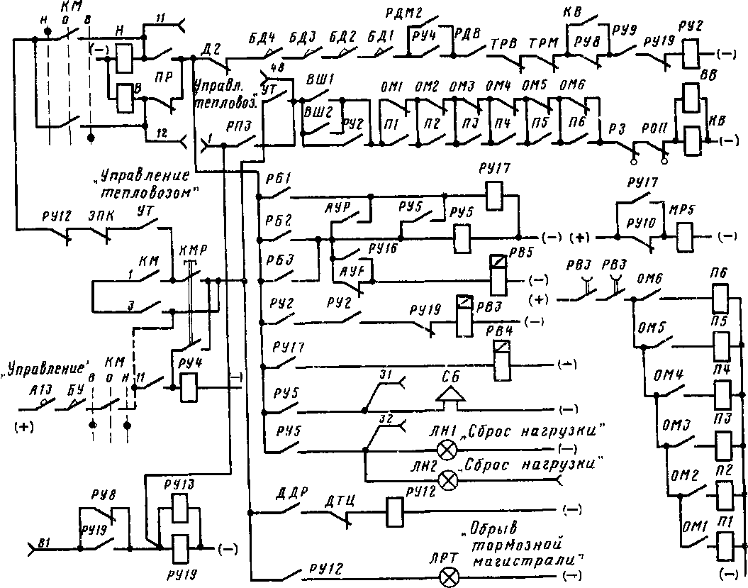 Эти цепи обеспечивают трогание тепловоза с места, его остановку, изменение направления движения, защиту от ненормальных режимов работы.