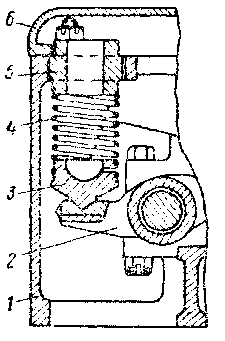 Затяжка пружин 5 рассчитывается таким образом, что при повышении давления в картере рамы на 0,1 кг/см2 клапан должен открываться.