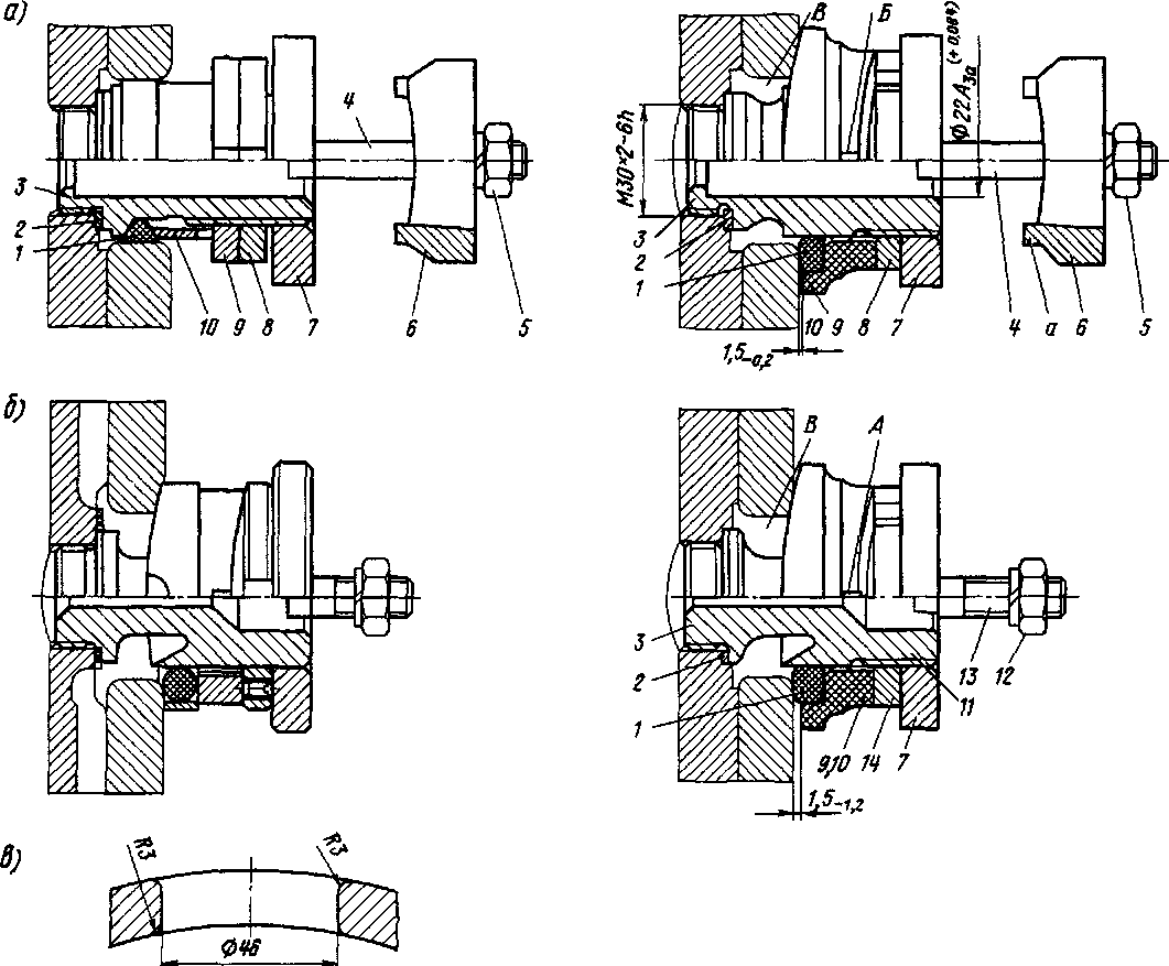 нения, поэтому устанавливают два резиновых кольца (рис. 40, а).