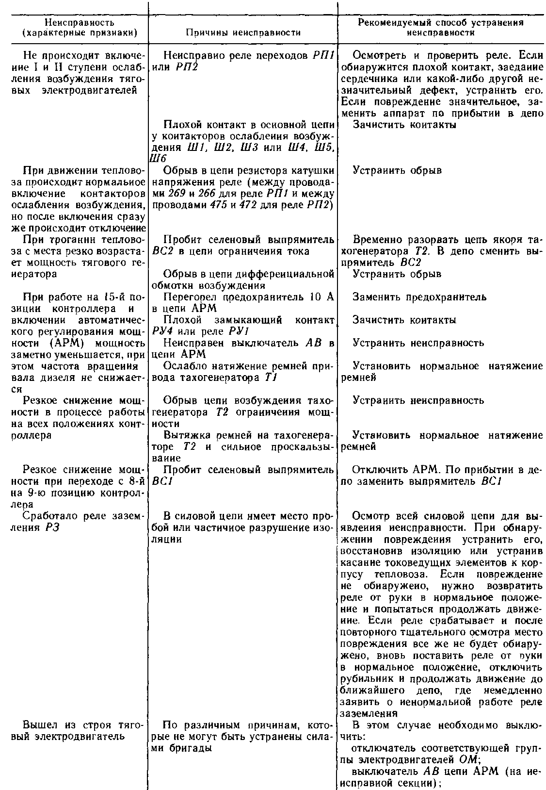 ВОЗМОЖНЫЕ НЕИСПРАВНОСТИ В РАБОТЕ ТЕПЛОВОЗА ТЭЗ И СПОСОБЫ ИХ УСТРАНЕНИЯ (СМ. РИС. 88, 89 И 90 НА ВКЛАДКЕ К КНИГЕ)