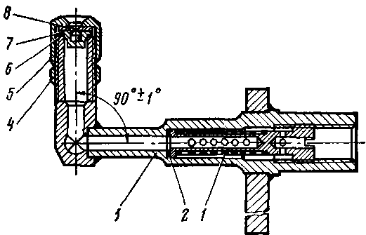/ — фильтр; 2, 6 — прокладки; 3 — корпус; 4 — контргайка; 5 — гайка накидная; 7 — завихритель; 8 — сопло
