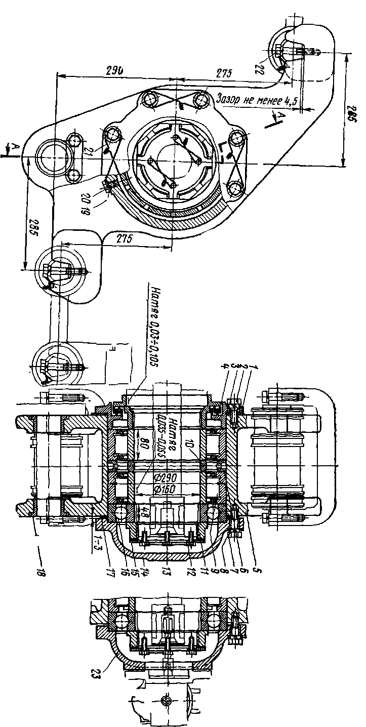 5. Натяг роликовых подшипников 0,035_0 055 мм. Разница в величине осевой игры двух шариковых подшипников, устанавливаемых на одну ось, не должна превышать 0,1 мм.