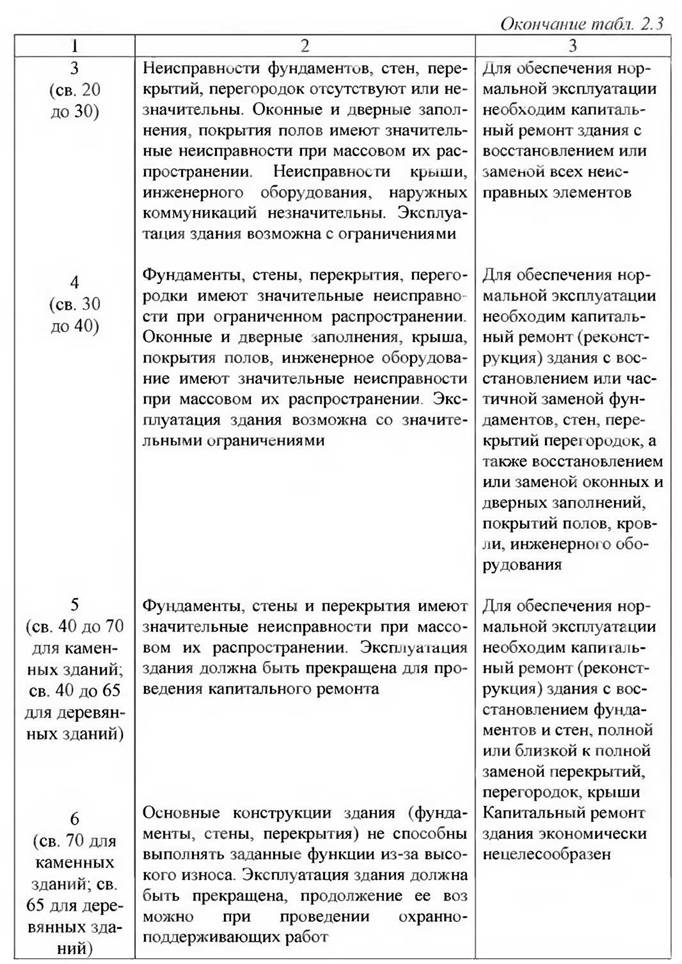 Классификация гражданских зданий по физическому износу приведена в табл. 2.3 [6].