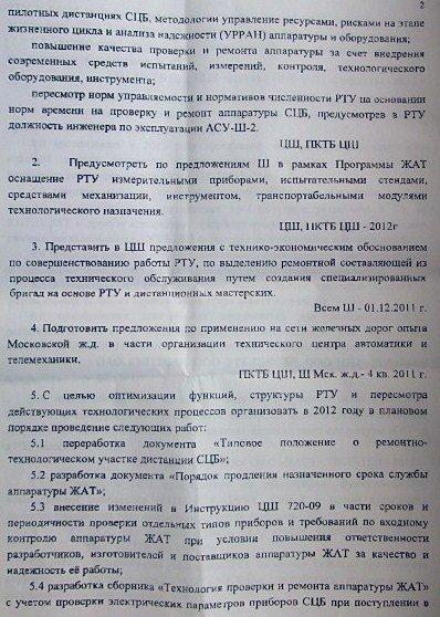 Пункт 5.3 "внесение изменений в Инструкцию ЦШ 720-09 в части сроков и периодичности проверки отдельных типов приборов и требований по входному контролю аппаратуры ЖАТ при условии повышения ответственности разработчиков, изготовителей и поставщиков аппаратуры ЖАТ за качество и надежность ее работы".