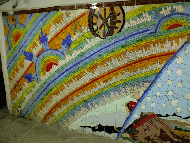 В Ростове-на-Дону есть очень необычная штука - мозаика в подземных переходах. В бывшем СССР мозаика довольно широко использовалась для украшения городов - но в основном на торцах домов. Здесь же интересно не только расположение, но и общий результат - при том, что в отличии от "настенных" картин зритель вынужден рассматривать эту мозаику с очень небольшого расстояния - выглядит она замечательно, не отталкивая грубым исполнением. Ещё одна особенность - эпичность полотен, многие из них имеют длину до десятка метров.