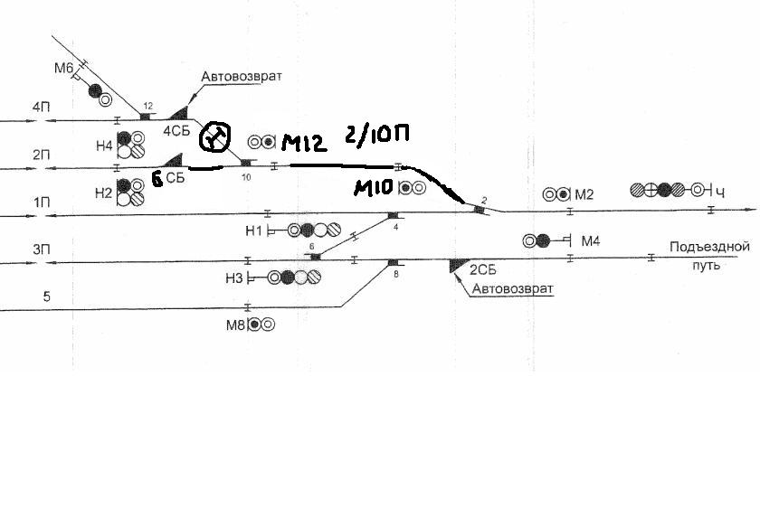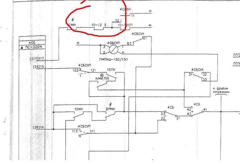 .................................................. .................................. ![]() Rafa добавил 15.02.2014 в 15:38 Вопрос 1. Задаем маршрут от М12 за Н2. Ну понятно, что 4СБ переводим в плюс, а 6СБ в минус и замыкаем их. Нужно ли при этом контролировать свободность секции 12СП ? 4СБ ведь в плюсе, тоесть в отводящем положении. ![]() Rafa добавил 15.02.2014 в 17:39 .................................................. ............................ Нашел схему управления 4СБ. ![]() В пусковой цепи нету контакта замыкающего реле секции 2-4 СП. Следовательно методом исключения, в маршруте по минусу 2 плюсовое положение 4СБ не контролируется. .................................................. .................. Последний раз редактировалось Rafa; 15.02.2014 в 16:40. Причина: Добавлено сообщение |
