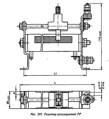 Внешний вид регулируемого резистора РР приведен на рис. 303. Технические данные регулируемых резисторов приведены в табл. 255.